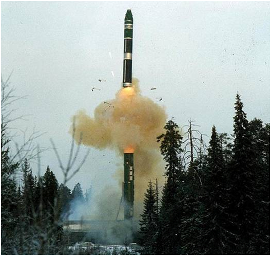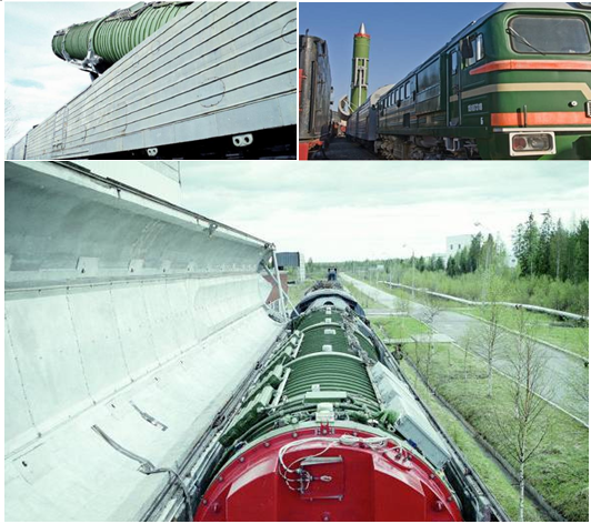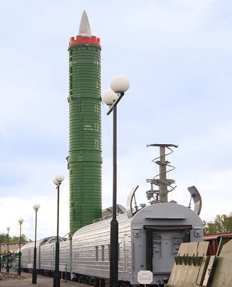 3節車(chē)廂的車(chē)頂向旁邊敞開(kāi),而藏在里面的機械裝置將把導彈發(fā)射集裝箱變成垂直狀態(tài)。兩分鐘后,總共攜帶30個(gè)單用制導戰斗部的3枚導彈就會(huì )飛向侵略者的方向,每個(gè)單用制導戰斗部的威力為550千噸當量。圖by維基百科