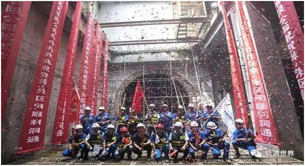 8月21日,施工人員在武漢軌道交通陽(yáng)邏線(xiàn)工程朱家河站盾構井內慶祝首條穿越長(cháng)江新城的地鐵線(xiàn)全線(xiàn)貫通。這一地鐵線(xiàn)預計年底正式開(kāi)通試運營(yíng)。(新華社記者 熊琦 攝)